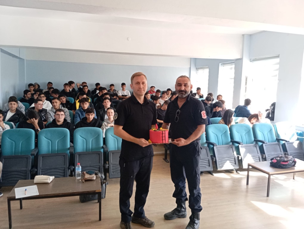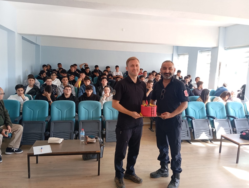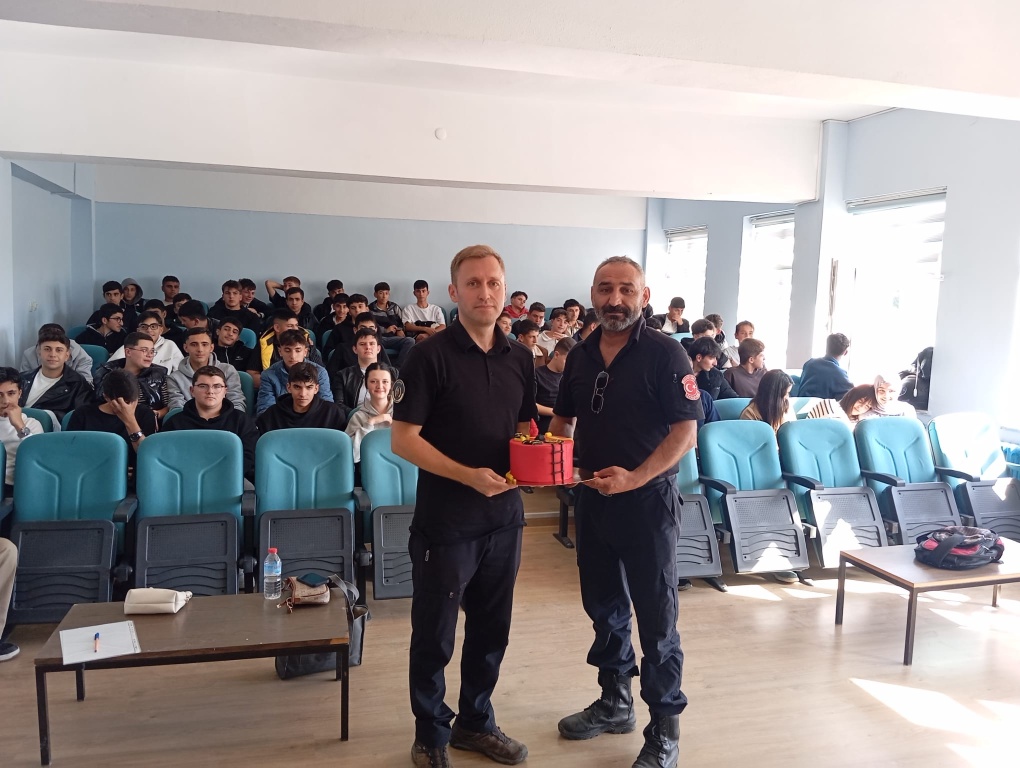 01.10.2025 Çarşamba günü okulumuz konferas salonunda "İtfaiye Haftası" kapsamında öğrencilerimize yangın eğitimi verilerek yangın tatbikatı icra edildi. Bozüyük İtfaiyesinde görevli Berkan Akagündüz, Emrah Şimşek ve Fırat Göksu öğrencilere yangın eğitimi verdi. İtfaiye Haftası nedeniyle pasta kesilerek itfaiyecilerimizin haftasının da kutlandığı eğitim sonrasında yangın tatbikatı icra edildi.